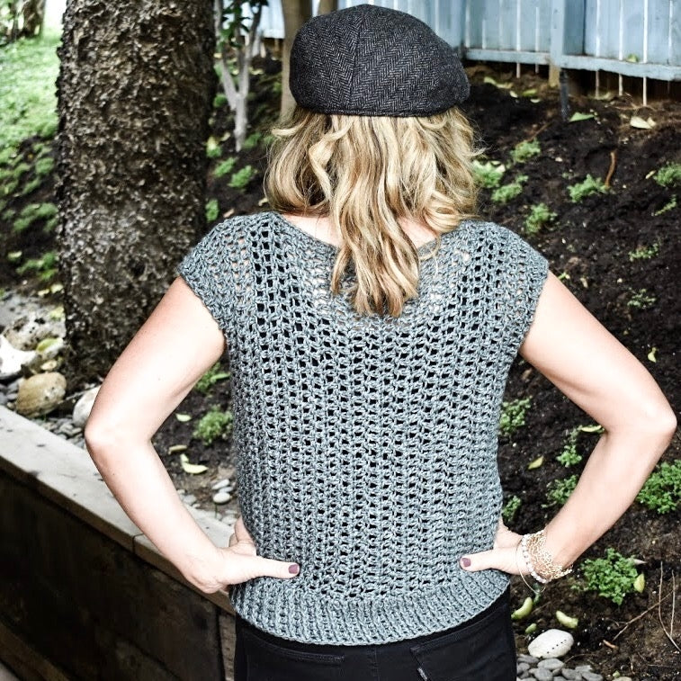 With its Classic cut and waist length, this airy basic Summer Tee is your seasonal go to! Paired with a summer skirt or Jeans, this will compliment any outfit for an effortlessly put together look The Jeans yarn is so soft and light, this Tee is an easy layering piece, while displaying your wonderfully handmade garment. With its simple construction and extra details, it has an intricate look but is a breeze to work up.