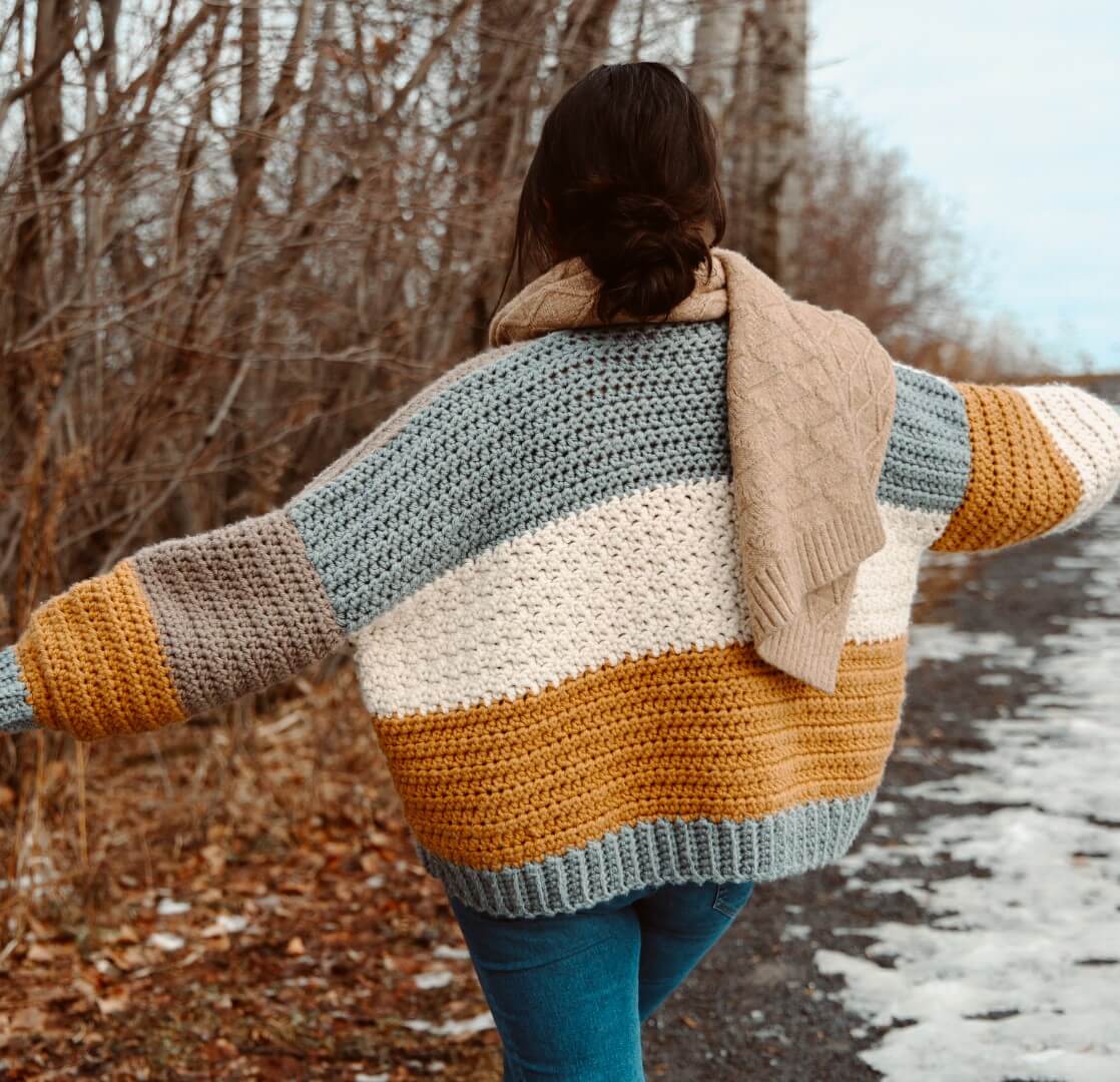 Wrap yourself in cozy vibes with the Fireside Crochet Cardigan! This beginner-friendly pattern features an oversized fit, easy construction, and a fun mix of 4 colours, making it the perfect winter layering piece. Whether you are lounging by the fire or heading out, this cardigan is as warm as it is stylish!