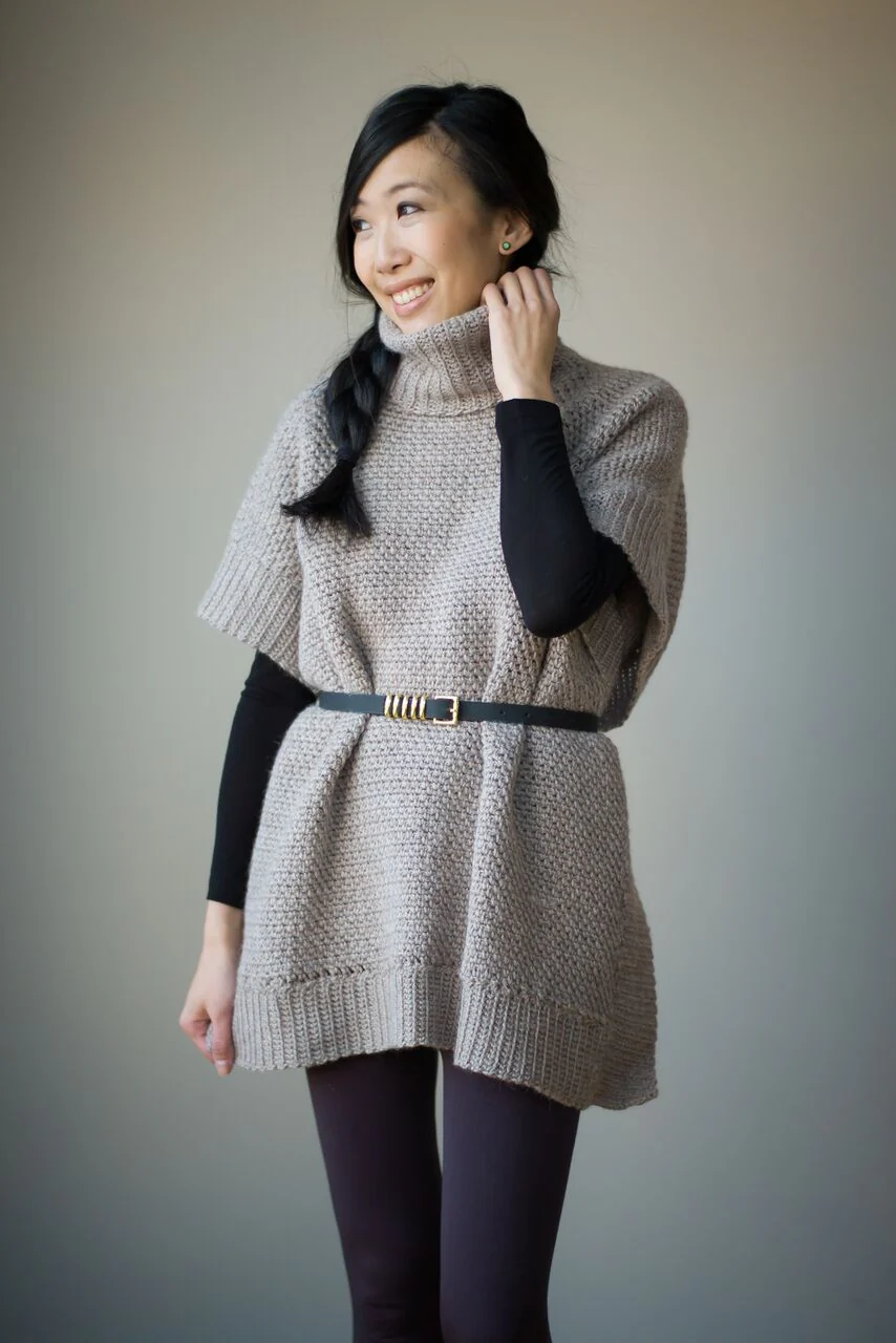 Crochet this stunning poncho with a turtleneck, beautiful ribbed detailing and stylish pockets using the granite stitch! The Granite Poncho is a wonderful way to add some handmade to your wardrobe, especially during the transitional weather. With no increasing or decreasing, this is a simple project that is suitable for beginners!