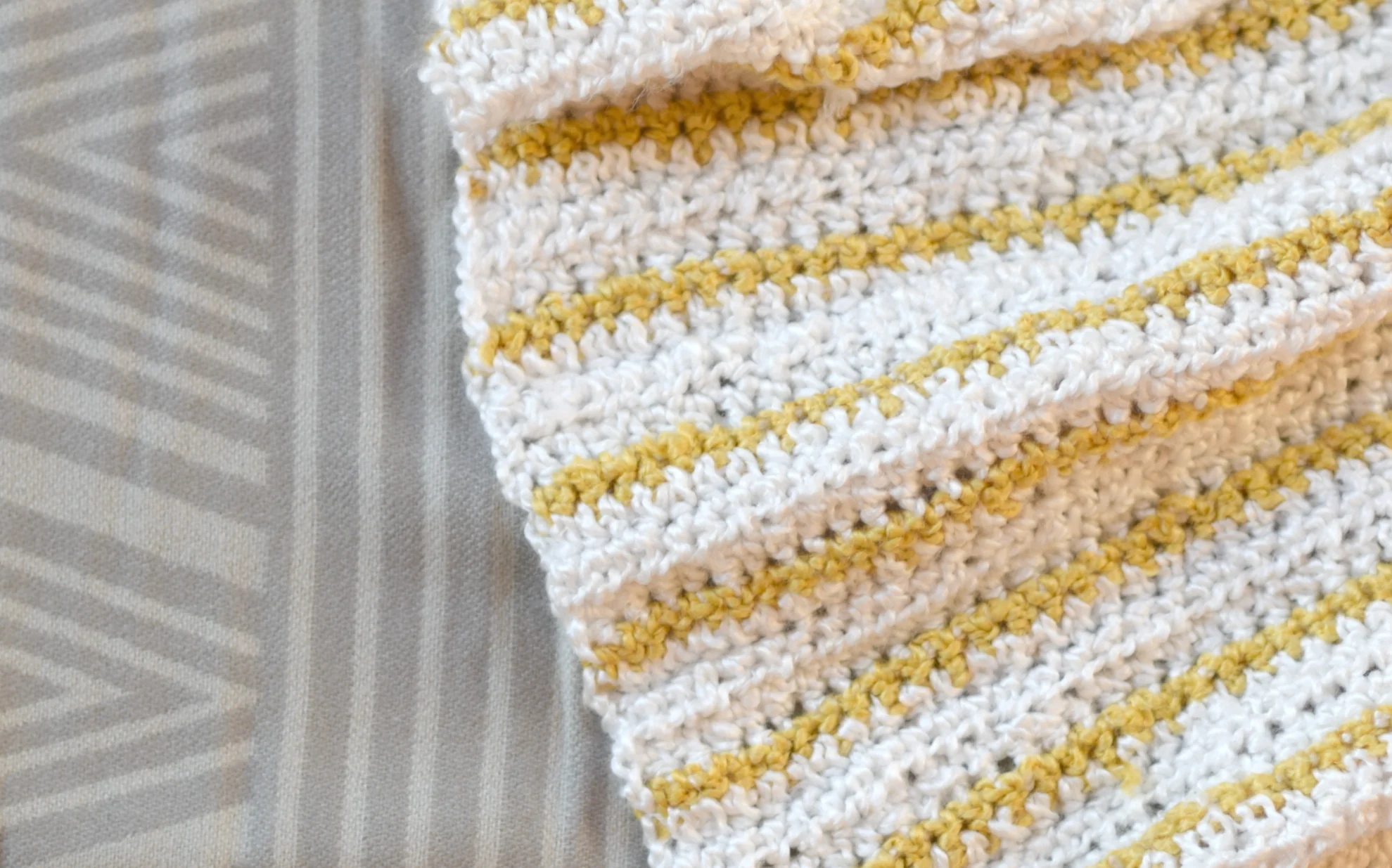 This squishy blanket is perfect for beginners or for anyone who wants a project with a super easy stitch pattern. The size is ideal for a baby blanket or lapghan and the yarn creates a soft and beautiful texture! The colors are on trend and because they are gender neutral, the blanket makes a wonderful gift for expecting parents.!