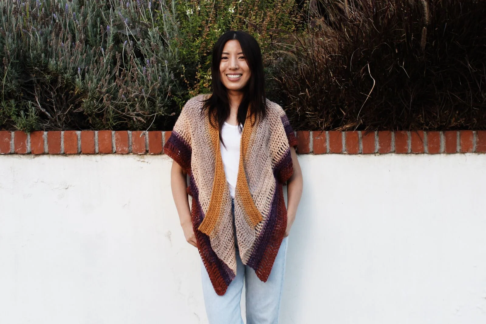 The Crochet Kit - Swallowtail Cardigan is a crochet cardigan kit that uses light weight yarn and has a skill level of beginner.