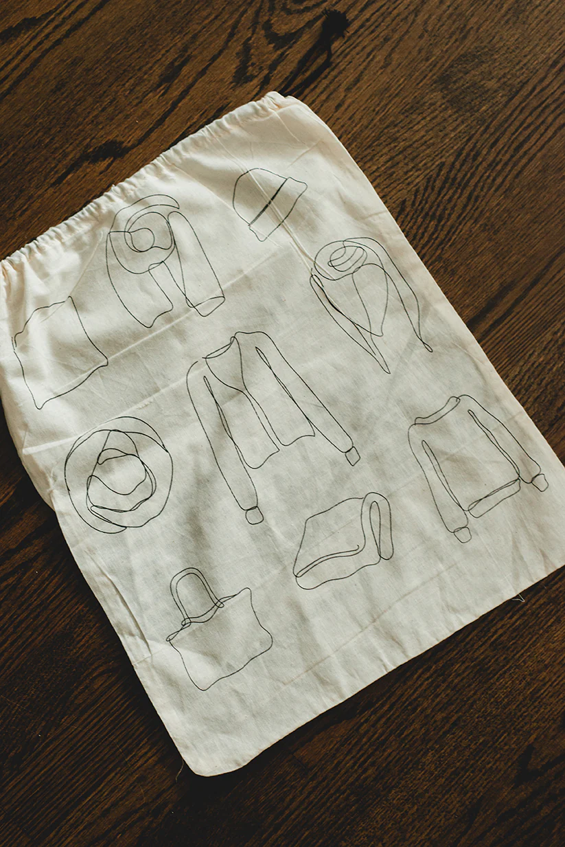 This drawstring bag is a wonderful way to organize your knit and crochet projects while showing your love for Hue + Me, the yarn, craftstyle, and vision of Two of Wands creator Alexandra Tavel! It’s made of 100% cotton, is approximately 15” x 19”, and features contemporary line drawings of garments and accessories. Makes a great gift!